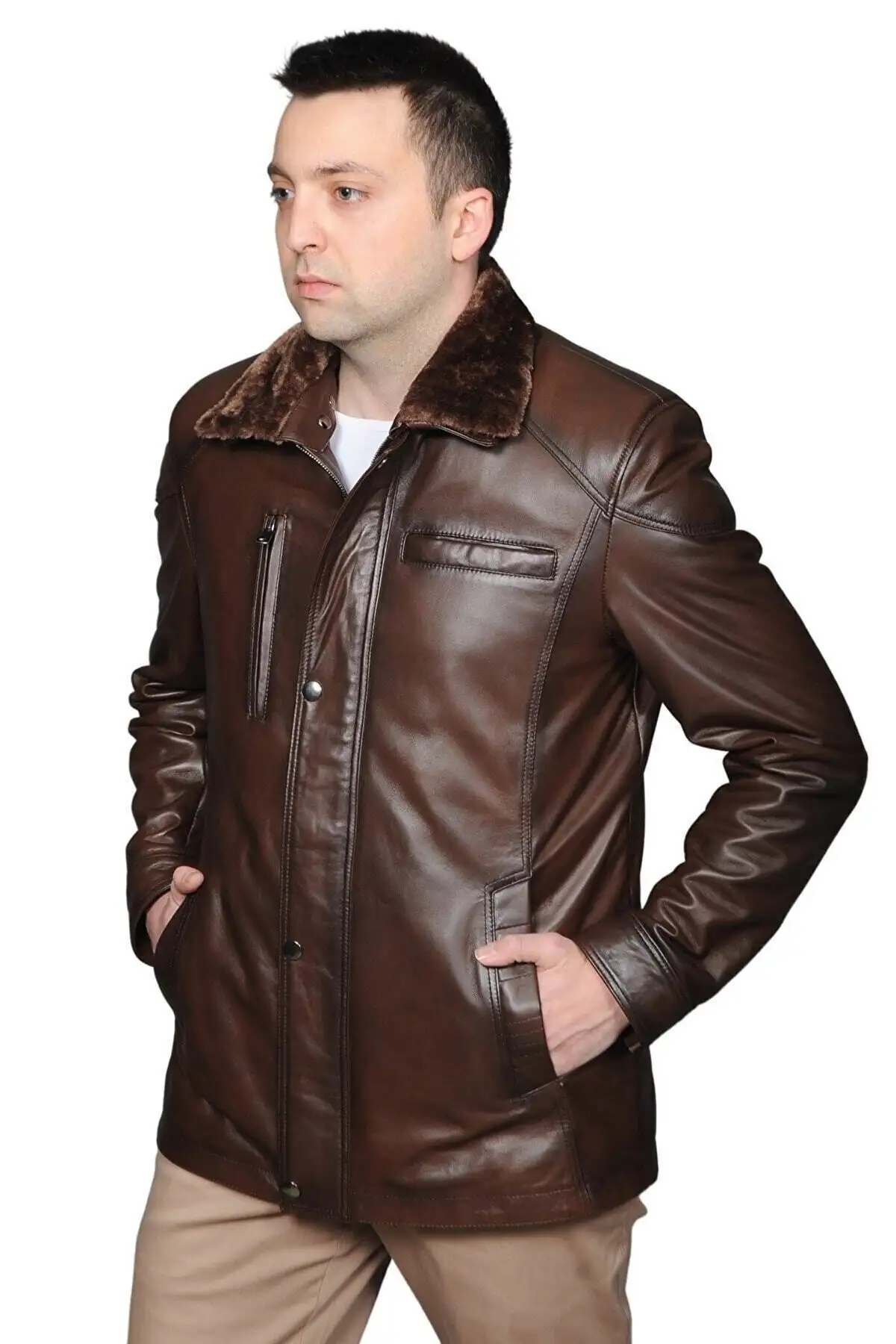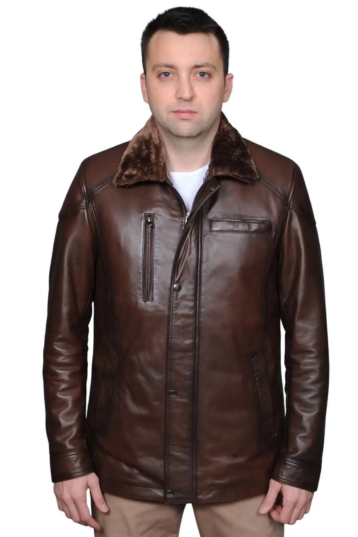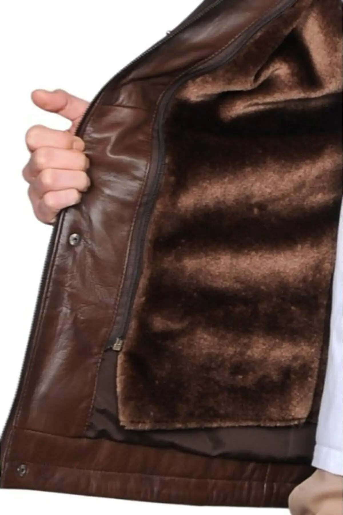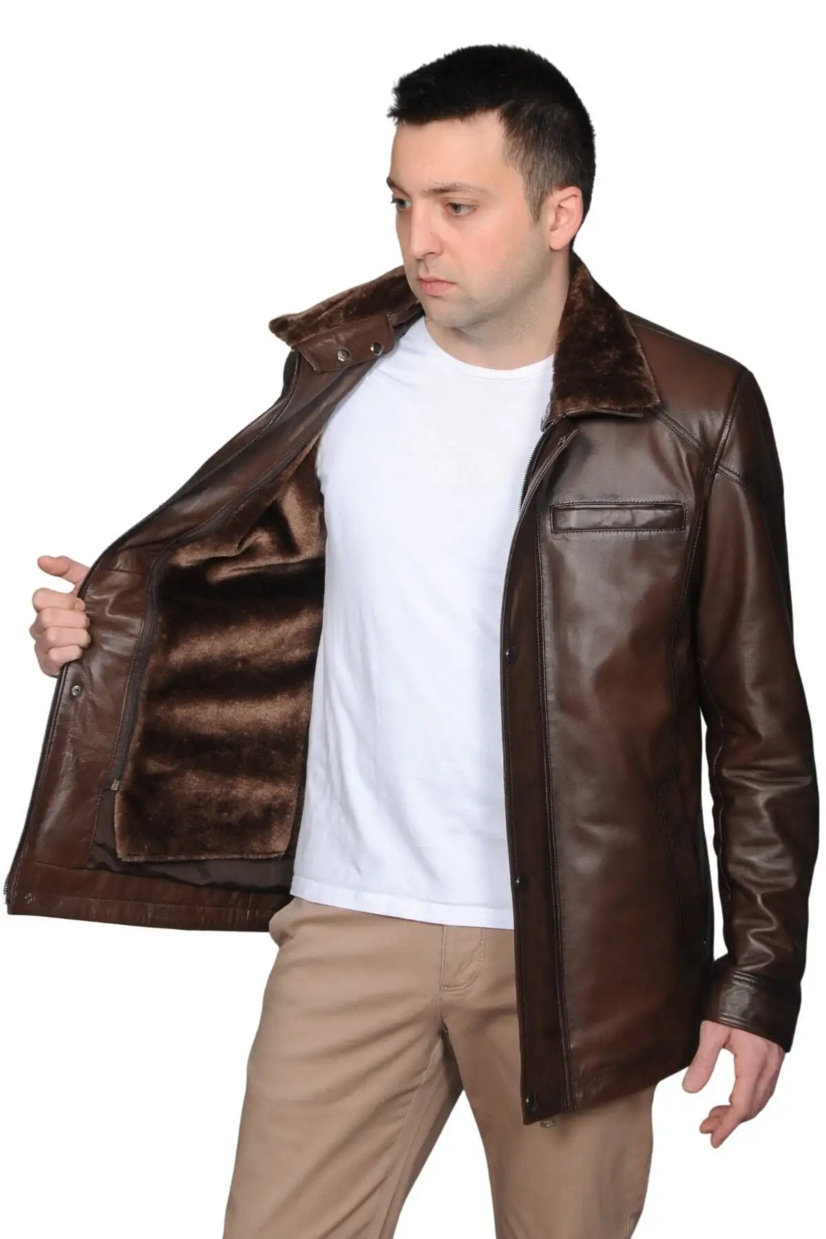 کت و کاپشن چرم طبیعی مردانه ترک اورجینال با آستری خزدار – 11450