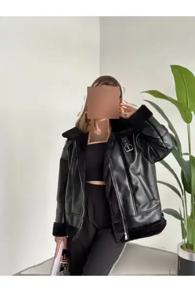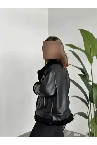 کت چرمی مشکی راحت با برش اور ساز و آستری ابریشمی زنانه ترک – 12616