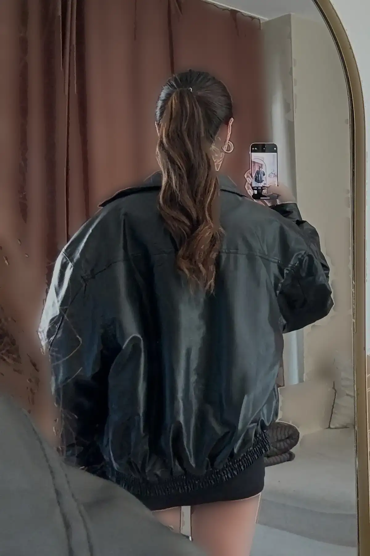 کت چرمی مشکی زنانه اوور سایز وینتج اورجینال – 11808
