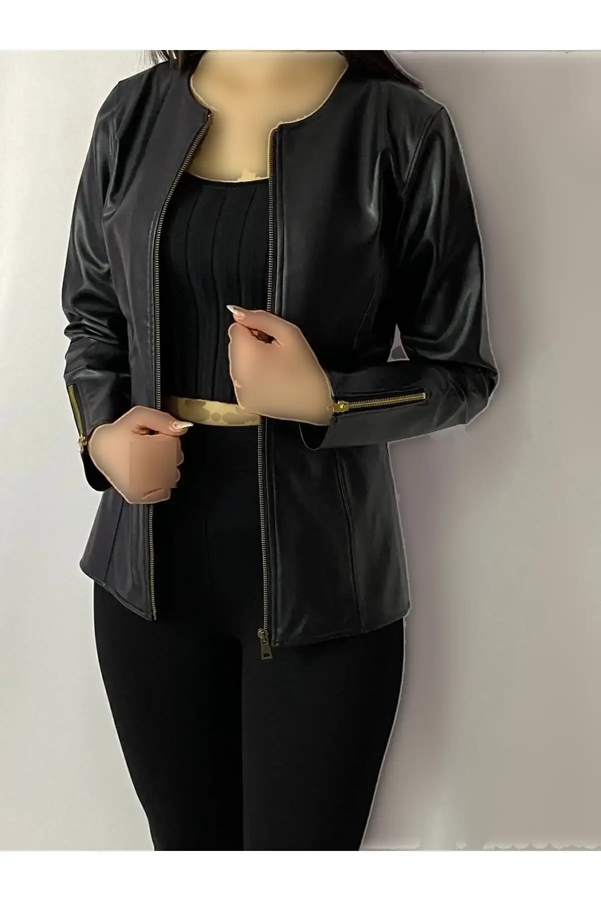 بدنه جاکت از چرم مصنوعی ساخته شده است که نه تنها باعث میشود سبک و جوان به نظر برسید، بلکه همچنین از شما در برابر سرما محافظت میکند.