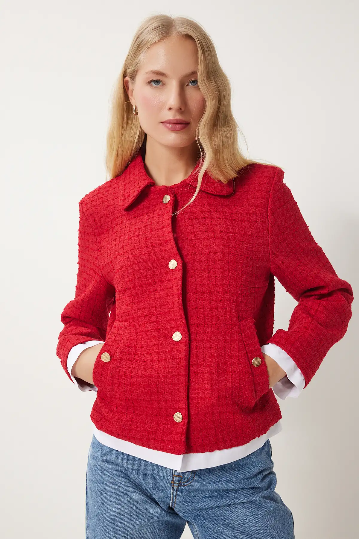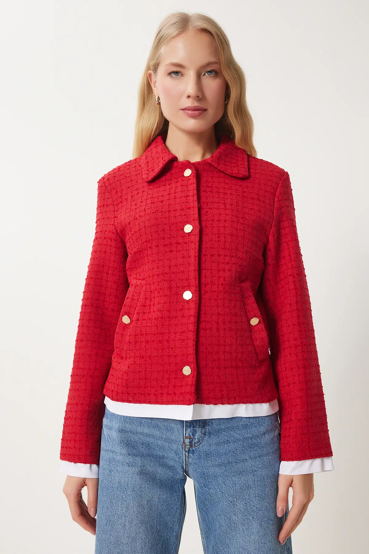 رنگ قرمز این کت نمای خاصی را به استایل شما میدهد و به راحتی میتوان آن را با لباسهای دیگر ست کرد.
