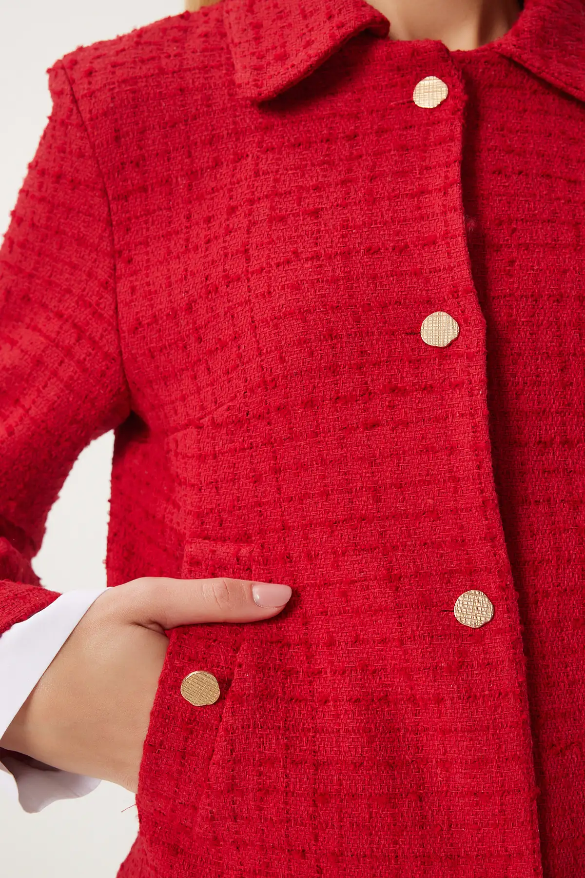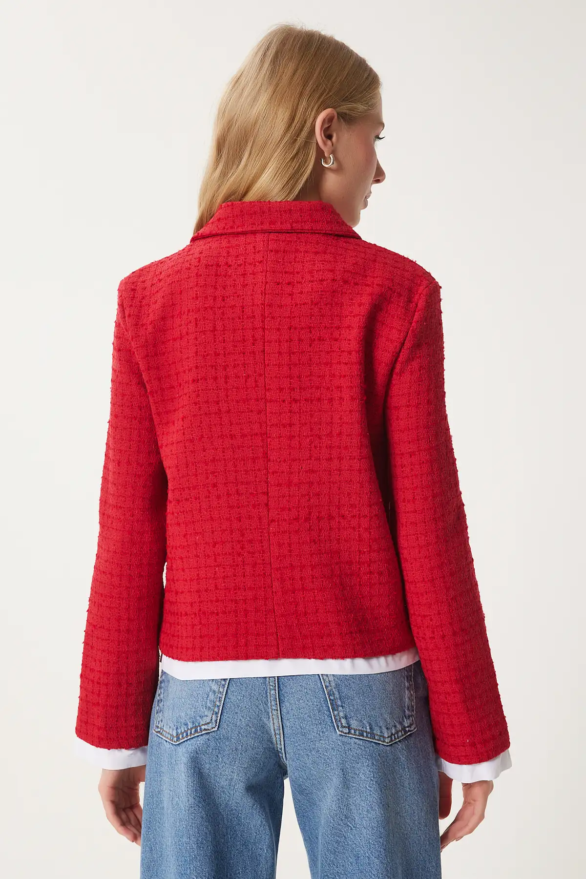 کت کتان قرمز زنانه با یقه طرح جدید – 11831