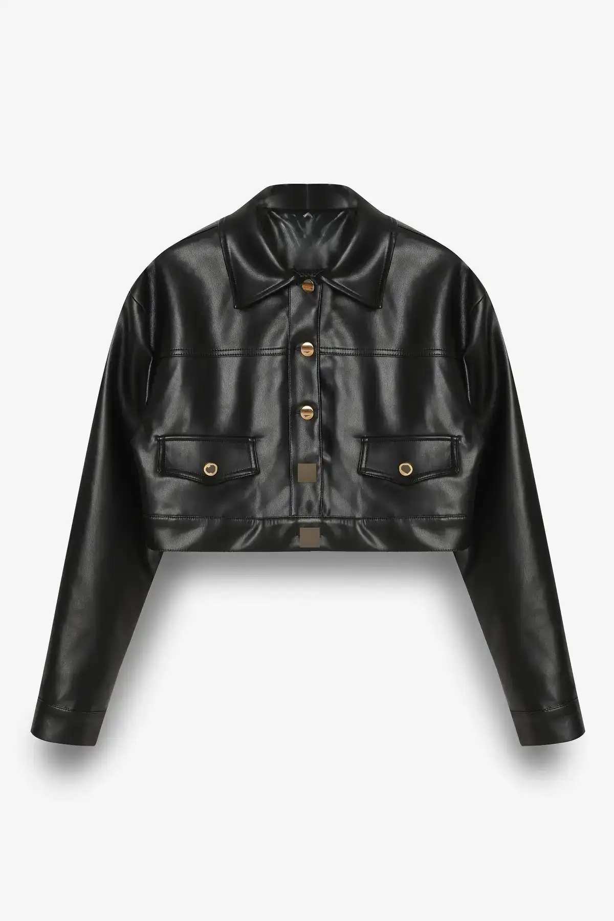 کت کوتاه چرم مصنوعی مشکی زنانه