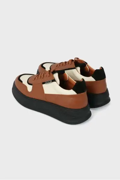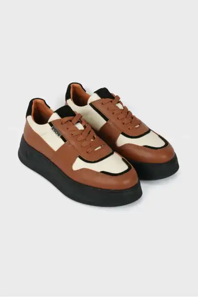 کفش اسنیکر زنانه با رنگ بژ و قهوه‌ای از چرم طبیعی گریس سریس اورجینال – 13462