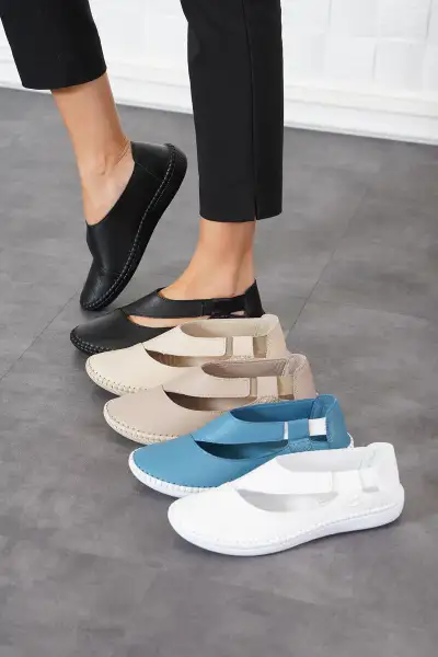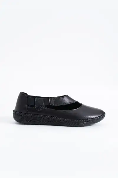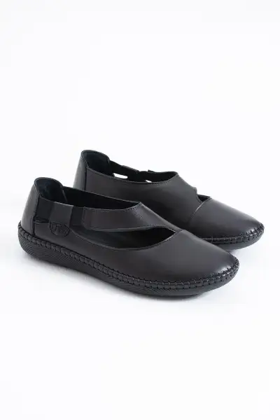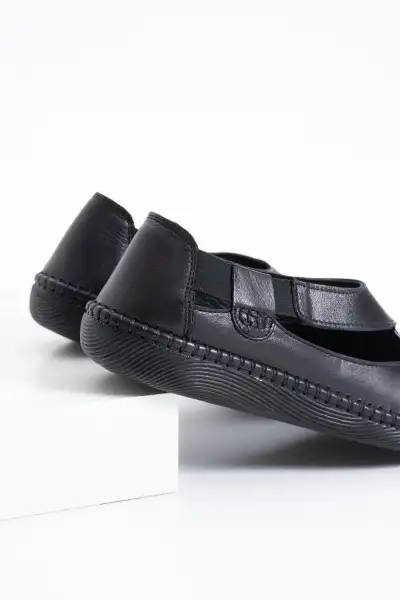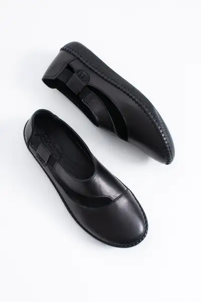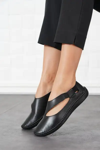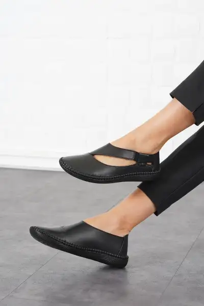 کفش زنانه چرم طبیعی با زیره طبی پنجرهای یان سا رنگ مشکی – 12771