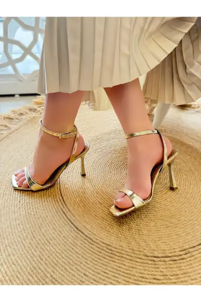 کفش پاشنهبلند طلایی 10 سانتیمتر زنانه اورجینال ترک – 12827
