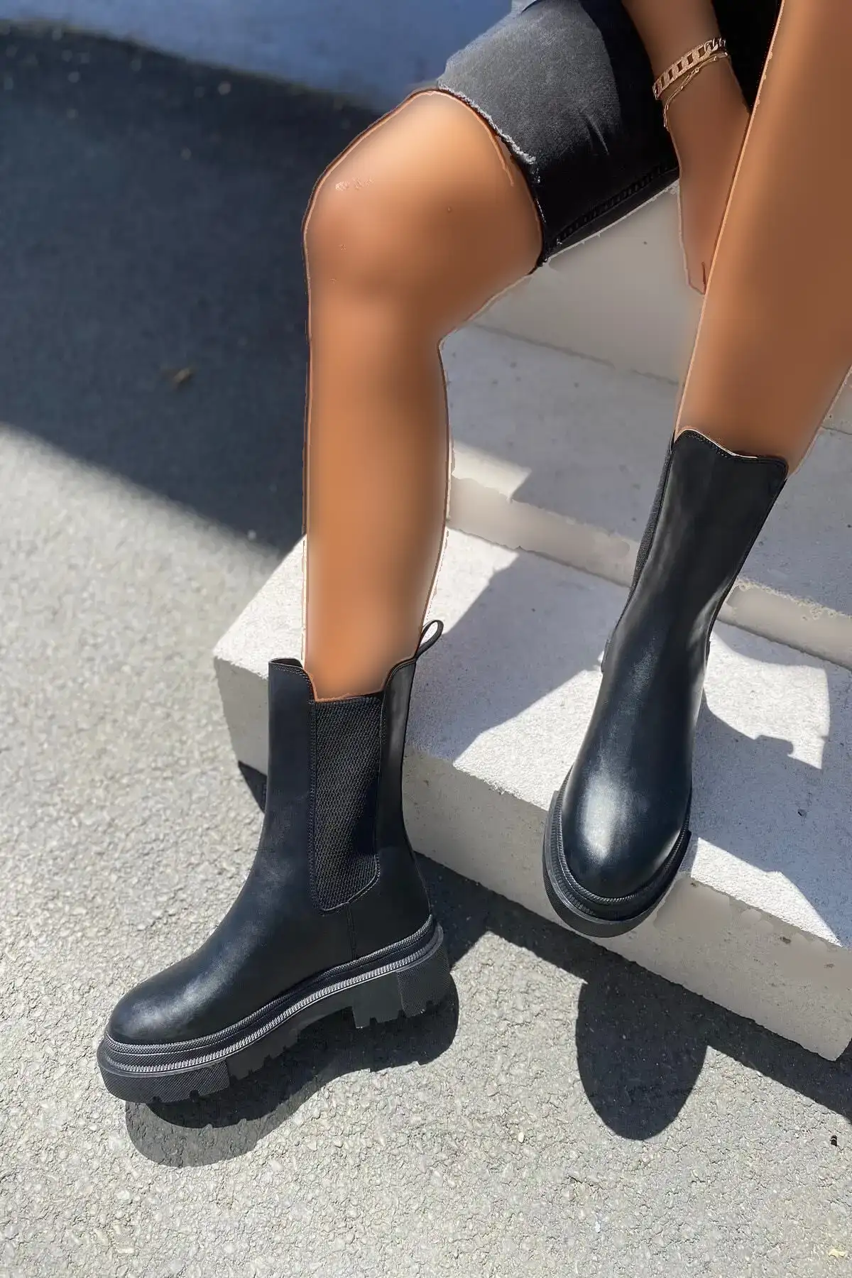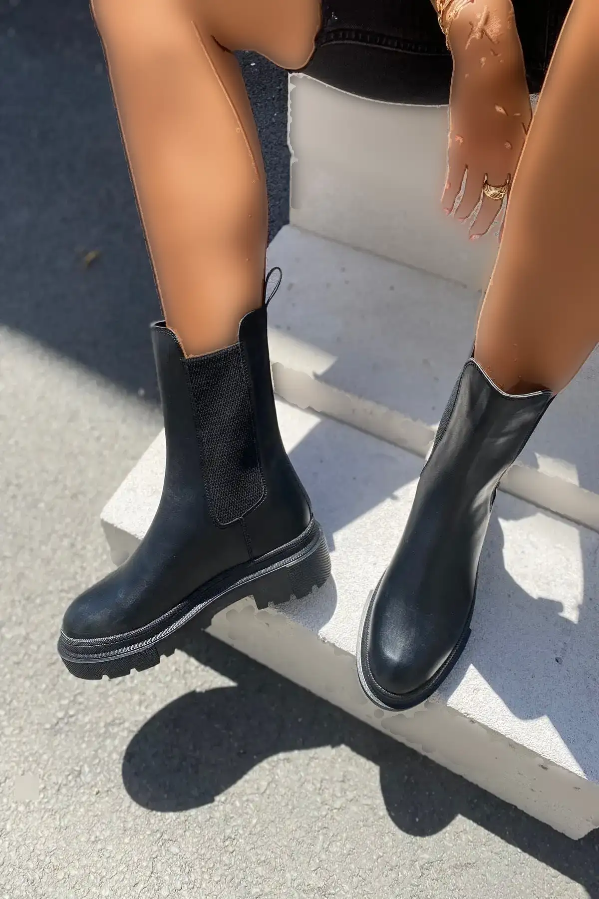 کفش چکمه زنانه دارای کش کناری رنگ مشکی زیره ضد لغزش
