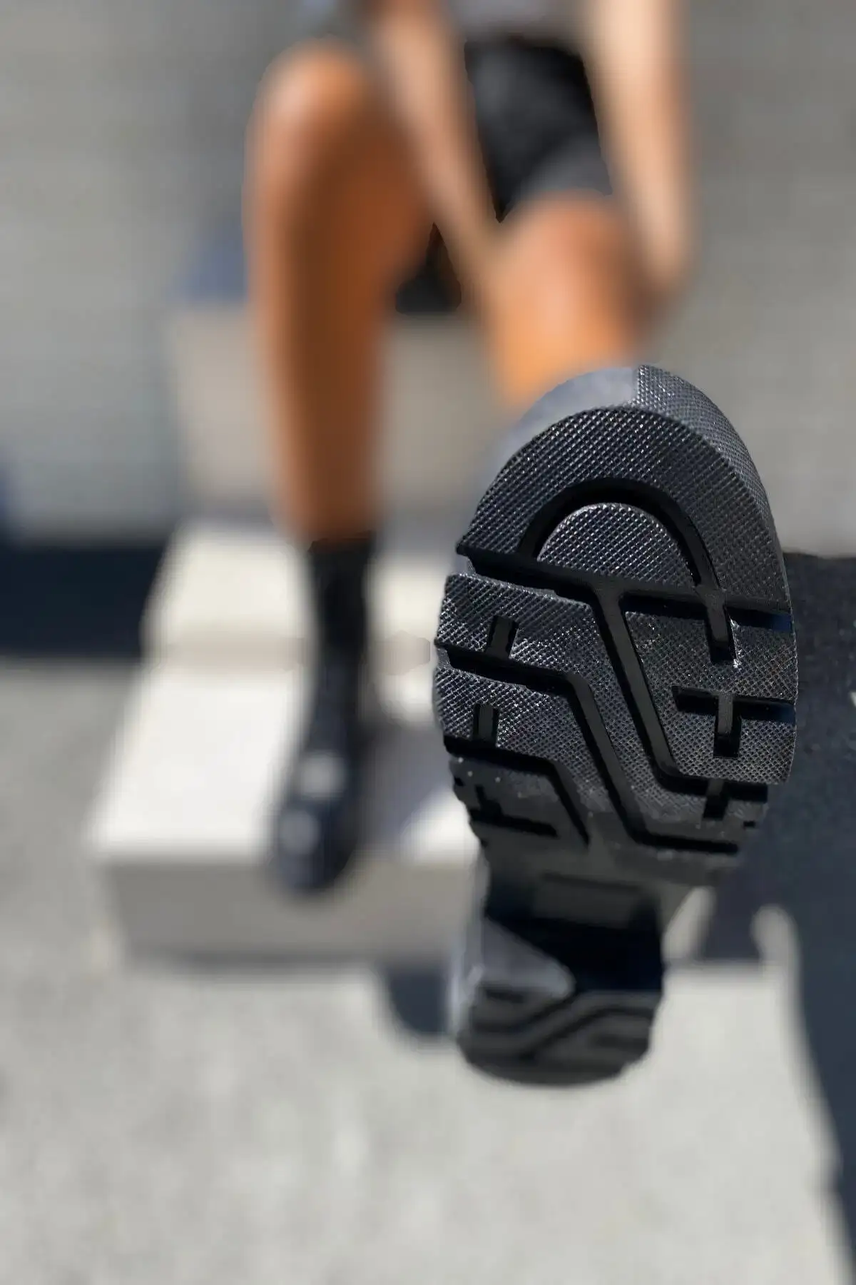 کفش چکمه زنانه دارای کش کناری رنگ مشکی زیره ضد لغزش  با طراحی استاندارد یک انتخاب عالی برای زنانی است که به دنبال راحتی و زیبایی می‌باشند. این کفش دارای کش کناری است که به راحتی پوشیده می‌شود و می‌توان آن را به سادگی تنظیم کرد.
