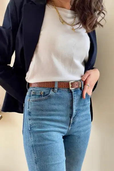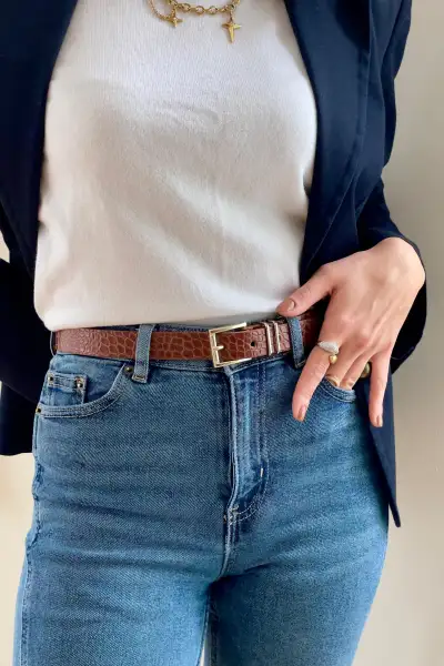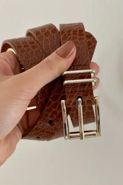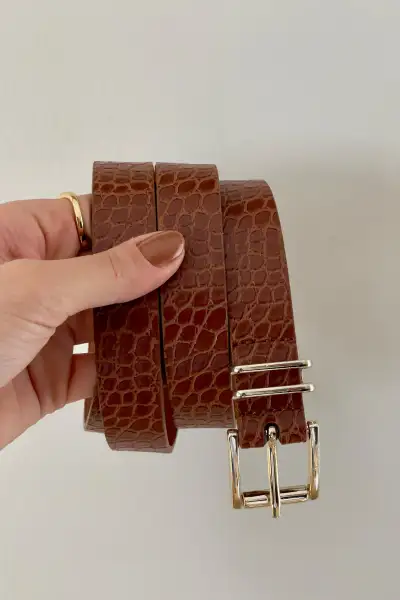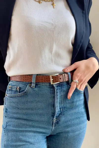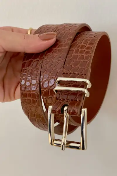 کمربند زنانه چرم با طراحی ظریف و بافت کروکودیل