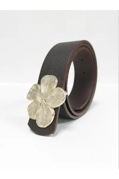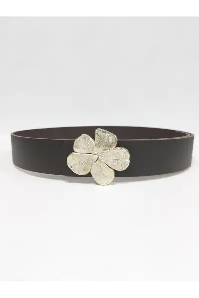 کمربند چرم طبیعی زنانه با سگک فلزی در رنگ قهوهای تیره – 12192