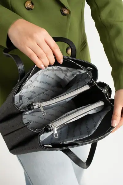 کیف دستی و دوشی زنانه سیاه پولو با طراحی ویژه، انتخابی ایده‌آل برای خانم‌هاست. این کیف دارای دو قسمت اصلی است که فضای کافی برای نگهداری لوازم شخصی را فراهم می‌کند.یکی از ویژگی‌های منحصر به فرد این کیف، وجود دو بخش زیپ‌دار اضافی است که امکان سازمان‌دهی بهتر وسایل را فراهم می‌آورد. این سازوکار به شما کمک می‌کند تا به راحتی به وسایل خود دسترسی پیدا کنید.کیف دستی زنانه ما از جنس چرم مصنوعی با کیفیت تولید شده است، که علاوه بر زیبایی، دوام و ماندگاری بالایی نیز دارد. شما می‌توانید این کیف را در هر مناسبت و شرایطی استفاده کنید.