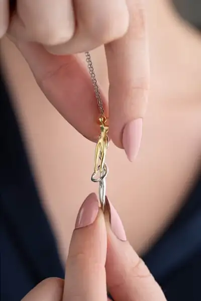 جنس این گردنبند از نقره 925 عیار است که به معنای خلوص و کیفیت بالا میباشد. نقره 925 عیار به دلیل درخشش و زیباییاش، همیشه مورد توجه افراد با سلیقه قرار دارد.این گردنبند در کنار زیبایی، دارای وزن مناسب و راحتی در استفاده نیز میباشد. با داشتن طول مناسب، میتوانید آن را به راحتی در هر موقعیتی بپوشید.توجه به جزئیات در طراحی این گردنبند، باعث شده است تا آن را به یک انتخاب عالی برای هدیه به عزیزانتان تبدیل کند. این گردنبند میتواند به عنوان یک هدیه خاص برای مناسبتهای ویژه مورد استفاده قرار گیرد.رنگ این گردنبند، درخشش خاصی به همراه دارد و با هر نوع لباسی سازگاری دارد. بستهبندی آن در یک جعبه Premium، نشان از ارزش و کیفیت بالای محصول دارد.از آنجا که گردنبند نقره 925 عیار از مواد با کیفیت تولید شده است، میتوانید به راحتی آن را با دیگر جواهرات خود ست کنید و یک استایل منحصر به فرد خلق کنید.