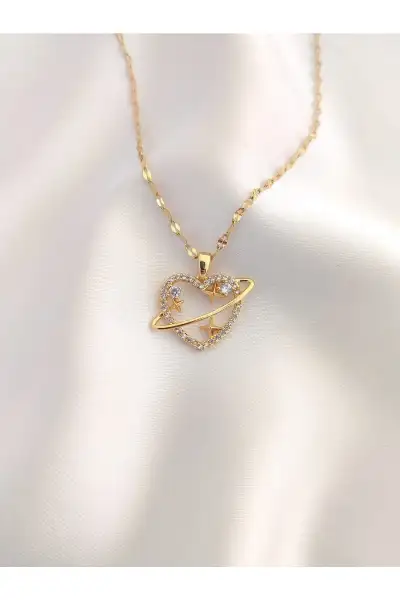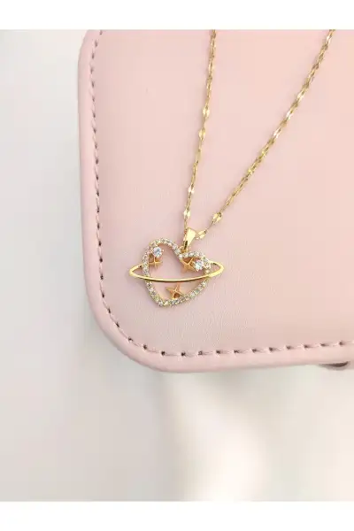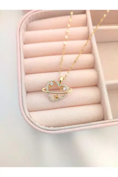 گردنبند قلبی ایتالیایی با ستاره و زرقون طلا از فولاد ضدزنگ ترند جدید سال 2026 – 12067