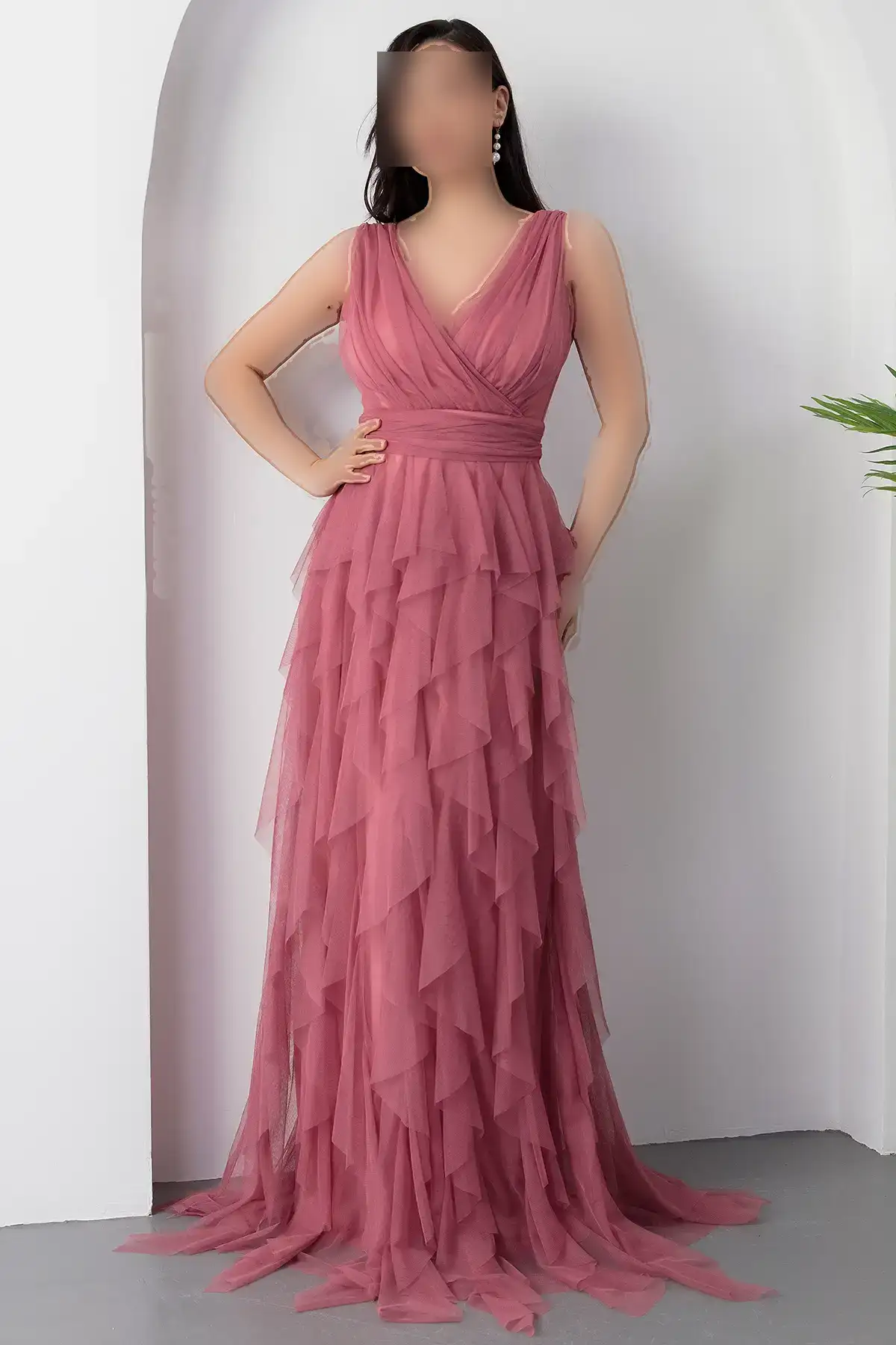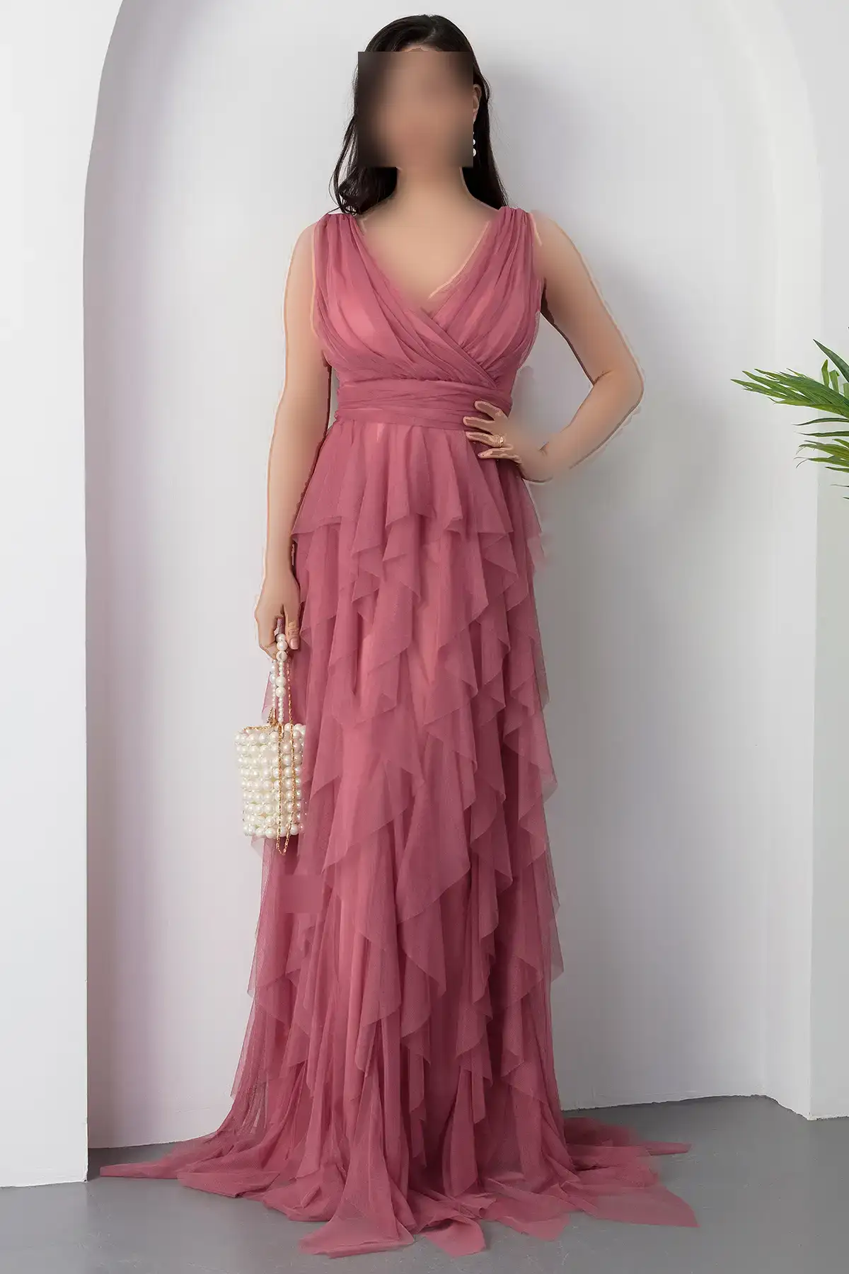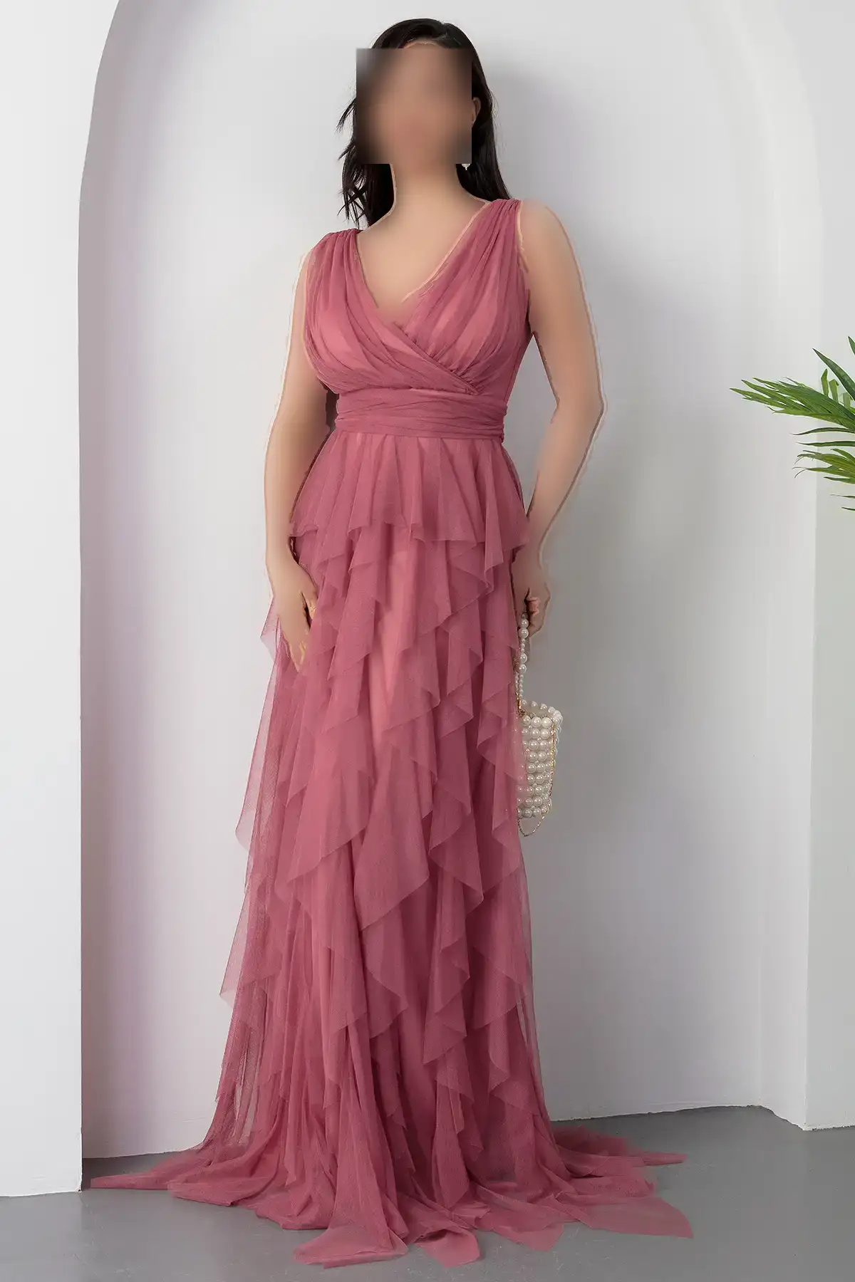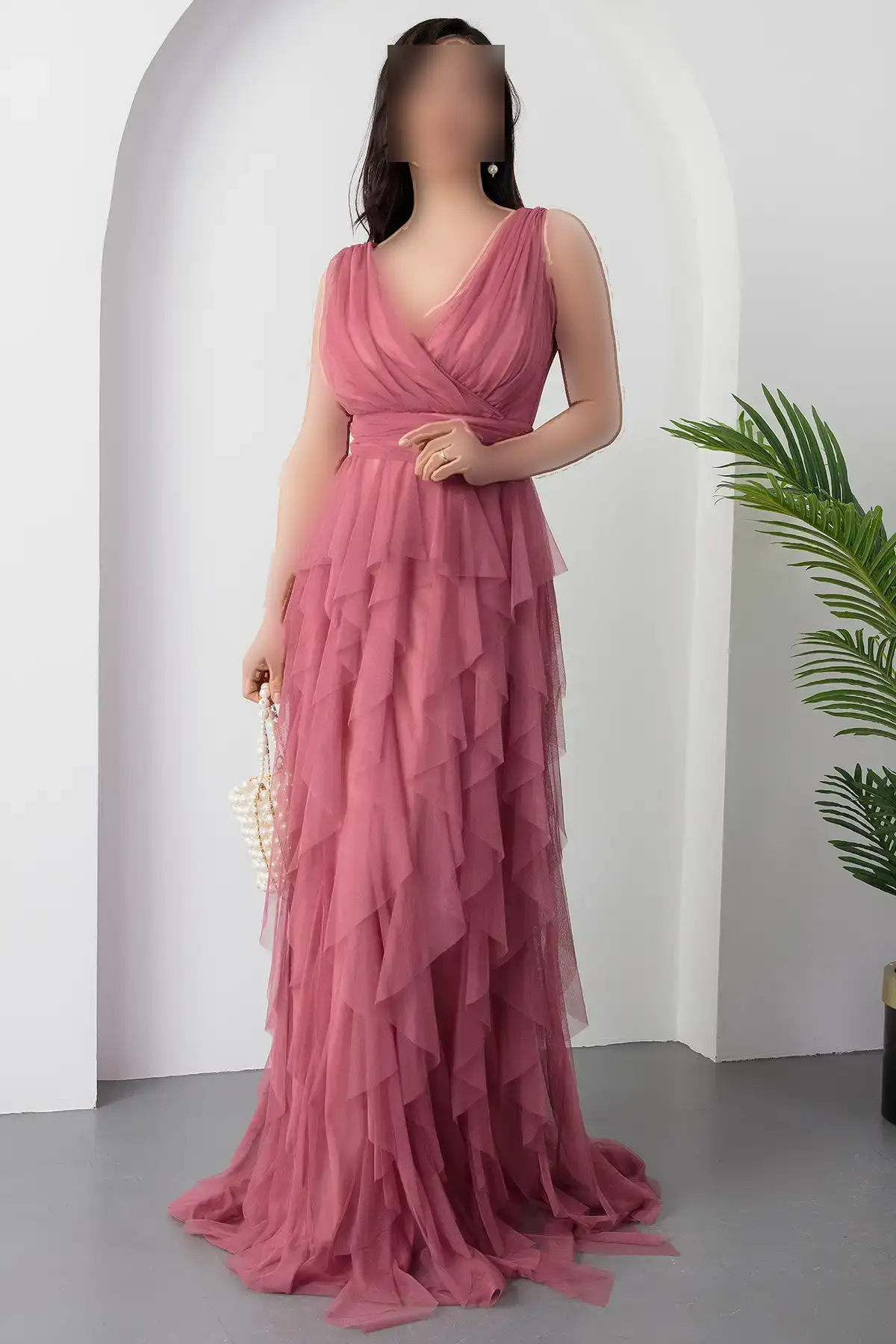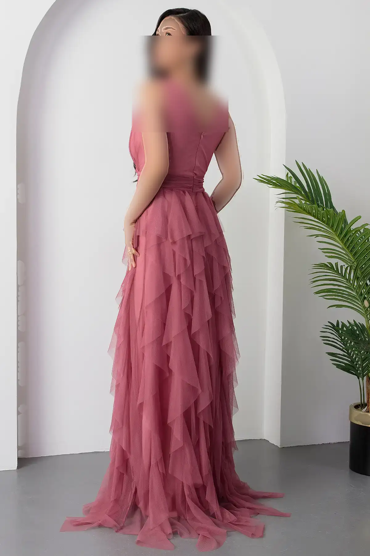 لباس نامزدی زنانه ترک بلند با دامنی پفی – 11430